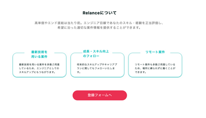 1度もフリーランスエージェントを活用したことがないエンジニア、自分のキャリアパスについてアドバイスをもらいたいエンジニア、Relance(リランス)の現役エンジニアのコンサルタントにサポートしてもらいたいエンジニアはRelance(リランス)の登録をおすすめします。
