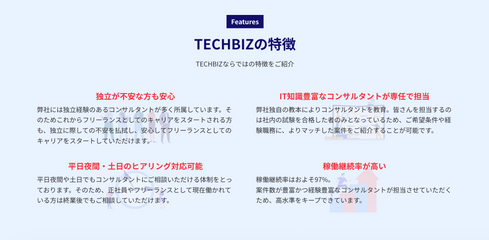 テックビズフリーランスは、株式会社テックビズが運営するフリーランスエンジニア向けの求人・案件情報サイトです。