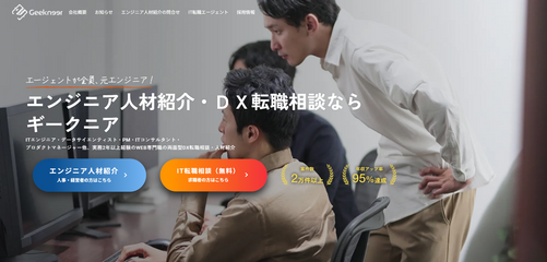「Geekneer(ギークニア)」は、株式会社ギークニアが運営するフリーランスエンジニア専門のエージェントです。