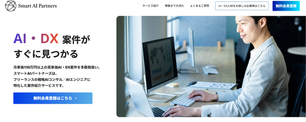 「スマートAIパートナーズ 」は、その名の通り、AI(人工知能)およびDX(デジタルトランスフォーメーション)領域に特化した、ITフリーランス専門のエージェントサービスです。最大の特徴は、この成長著しい専門分野に絞り込むことで、質の高い案件と手厚いサポートを実現している点にあります。