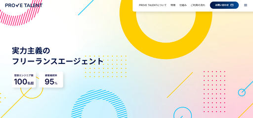 「PROVE TALENT」は、フリーランスのエンジニアに特化した専門エージェントサービスです。利用者のスキルやキャリアプランに寄り添い、高単価・フルリモート・週3日からの稼働など、柔軟な働き方を実現できる案件を提案します。最大の特長は、現役のエンジニアがキャリアアドバイザーとしてサポートする点です。技術的な知見に基づいた的確なマッチングを行い、エンドクライアント直請け案件を中心に紹介することで、エンジニアのキャリアアップと収入向上を力強く支援します。