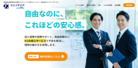 株式会社ジェイテックサービスが運営するITフリーランスエンジニア専門のエージェントです。最大の特長は、「正社員並みの安心をフリーランスに」というコンセプトのもと、業界屈指と謳う手厚い福利厚生を提供している点です。具体的には、レジャーやグルメの優待価格をはじめ、書籍購入費や資格取得費用の補助、健康診断費用の補助、さらには確定申告の代行サポートまで、フリーランスの働き方と生活を幅広く支援します。もちろん、案件面でもエンド直・プライム案件を中心に高単価・リモート案件を多数保有。専任コンサルタントによる手厚いサポートと迅速な支払いサイトも完備し、エンジニアが心身ともに健康で、安心してキャリアを築ける環境をトータルで提供します。