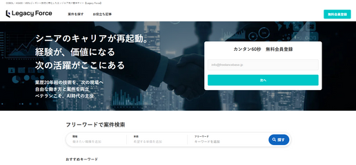 Legacy Forceは、COBOL、AS400、VBなどのレガシー技術に特化したフリーランスエンジニア向け案件紹介サービスです。全国から集めた多様な案件を掲載しており、特にシニア・ミドル世代のエンジニアを歓迎する姿勢が特徴です。高単価案件や上流工程の業務が豊富に揃っており、長年の業務経験や現場知識を活かせる環境が整っています。若手向けのモダン技術案件が主流となる中、Legacy Forceは「レガシー技術こそが強みになる」という価値観を掲げ、ベテランエンジニアの活躍の場を広げています。フルリモート希望者にも対応しており、柔軟な働き方を支援。経験豊富なエンジニアが安心して参画できるよう、案件の質や条件にもこだわり、安定した収入とやりがいのある仕事を提供しています。