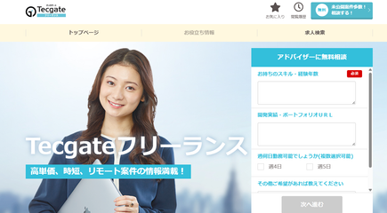 Tecgateフリーランスは、株式会社セルバが運営するITエンジニア向けの求人・案件紹介サービスです。高単価・時短・リモート勤務など、柔軟な働き方が可能な案件を多数掲載。未公開求人も豊富で、フリーランスや副業希望者に最適な環境を提供します。職種・スキル・希望稼働日数に応じて、専任アドバイザーが最適な案件を提案。全国対応で、正社員・業務委託など多様な雇用形態にも対応しています。