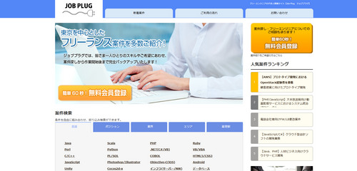 「JOB PLUG」は、東京を中心としたフリーランスエンジニア向けの案件紹介エージェントサービスです。
