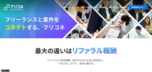「フリコネ (FREELANCE CONNECT)」は、「フリーランスと案件をコネクトする」ことを目的とした、フリーランスエンジニア向けのエージェントサービスです。最大の特徴は、他のエージェントにはない独自の「リファラル報酬制度」を導入している点です。これは、登録しているエンジニアが知人のエンジニアを紹介し、その知人が案件に参画して稼働を開始すると、紹介者に毎月2.5万円の報酬が継続的に支払われるという仕組みです。「つなげるだけで自分も稼げる」をコンセプトに、自身のスキルや人脈を新たな収入源(資産)に変えることを可能にしています。また、エージェントとしての基盤も強固で、グループ提携先は1500社以上、案件数は30万件以上と豊富です。リモート案件が80%を占め、平均年収も870万円と高水準であり、案件探しのプラットフォームとしても高い実力を持つ、ユニークなサービスです。