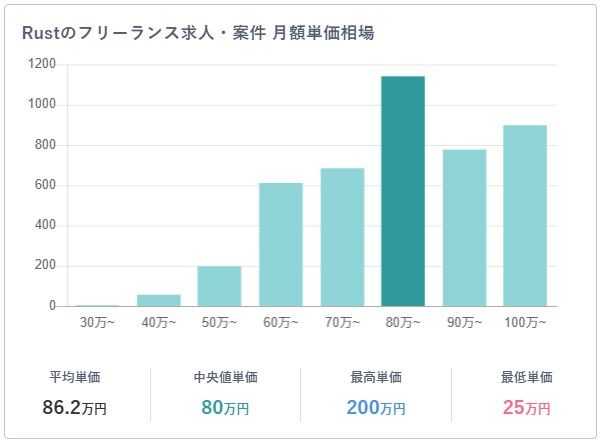 Rustはまだ新しい言語であるため、経験年数よりも「何を作ってきたか」が重視されます。他の言語での豊富な経験を持つエンジニアがRustを習得した場合、早期に高単価を狙うことが可能です。