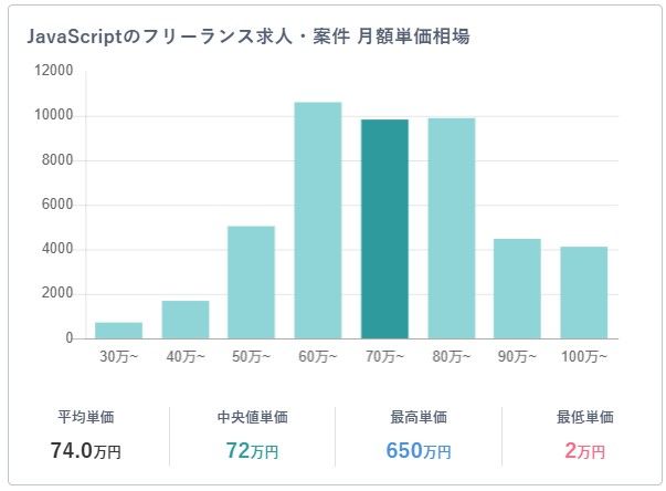 フリーランススタート掲載案件に見るJavaScript案件の単価傾向