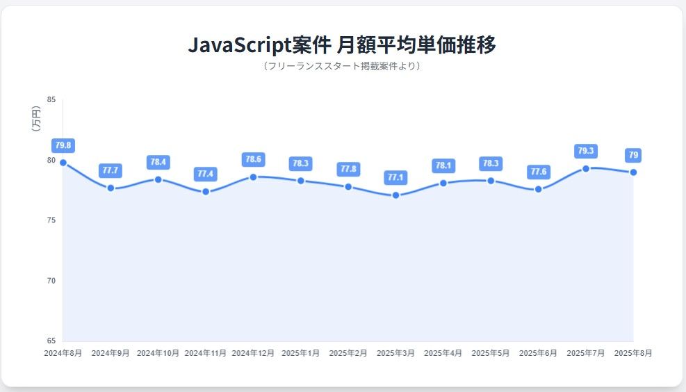 エン・ジャパンが運営する『フリーランススタート』の最新データを基に、2025年7~8月度のJavaScript案件の単価動向を分析しました。